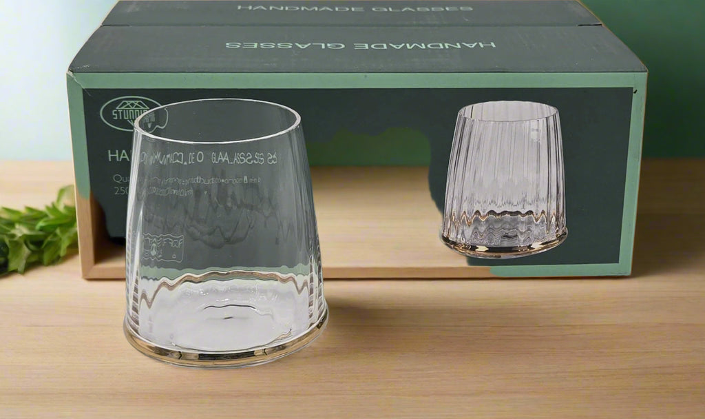 6 PC DRINKING GLASS W/GOLD DESIGN- 8/CS