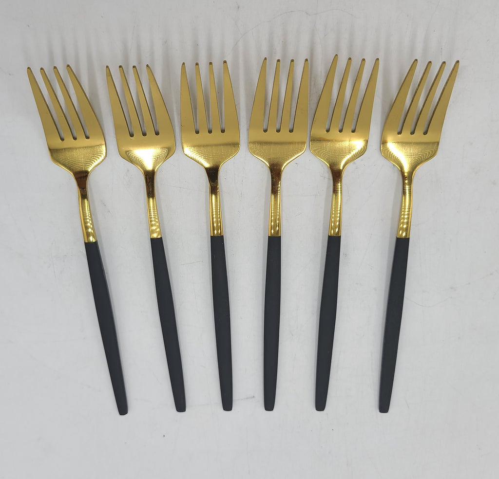 5.5"x0.75" - 6 PC FRUIT FORK- BLACK/GOLD