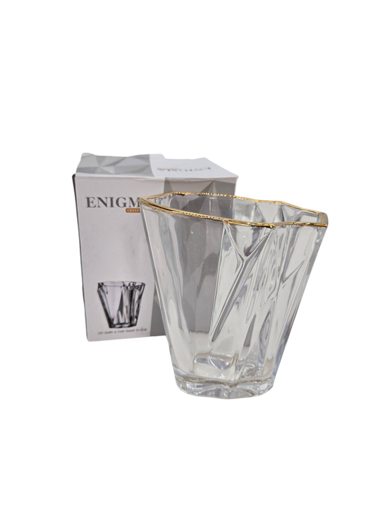 5"x4" GLASS UTENSIL HOLDER-GOLD RIM