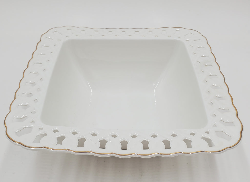 9.25"x4" BOWL W/GOLD RIM - SQUARE
