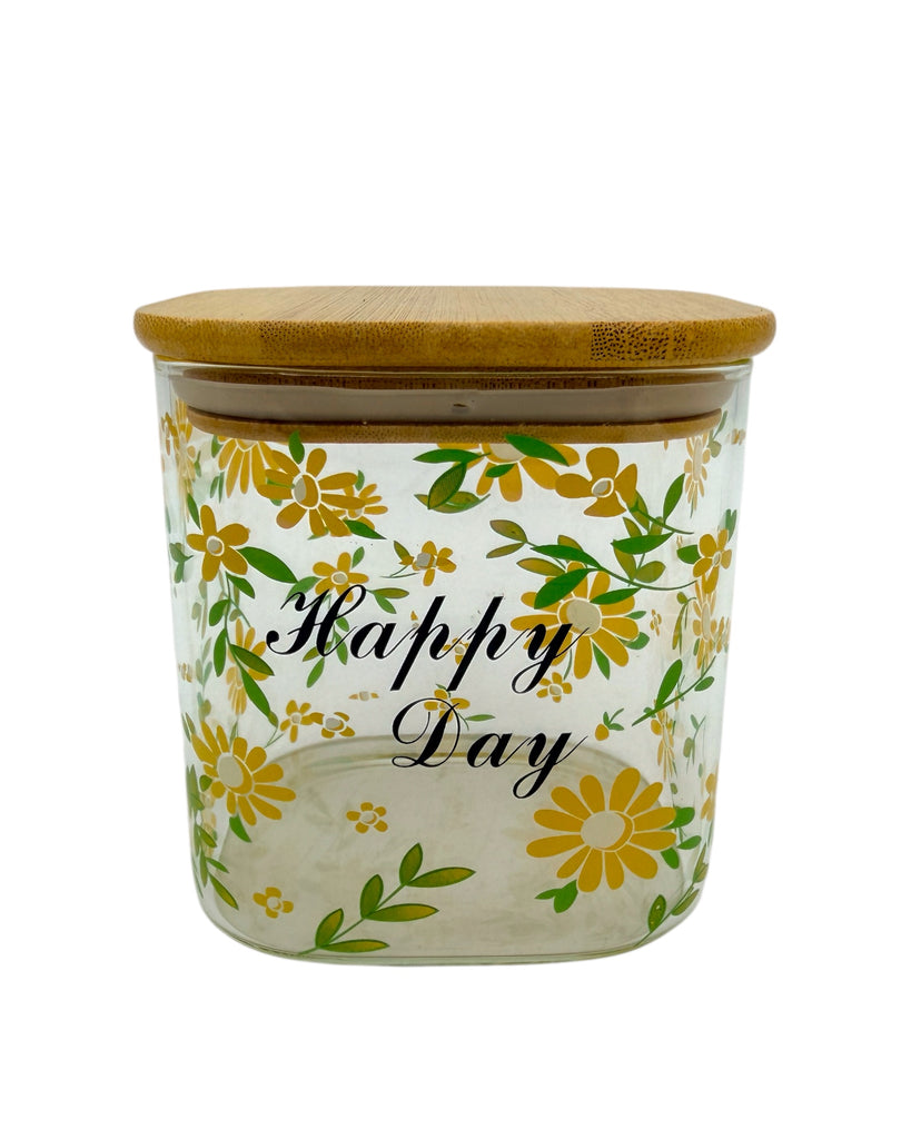 4"x4"GLASS JAR W/WOOD LI