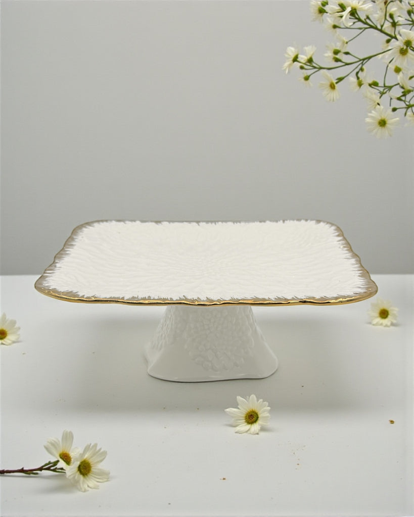 10" FOOTED PLATTER-GOLD RIM-SQUARE