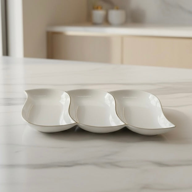 Plato de 3 secciones con borde dorado de 15" x 6,5"