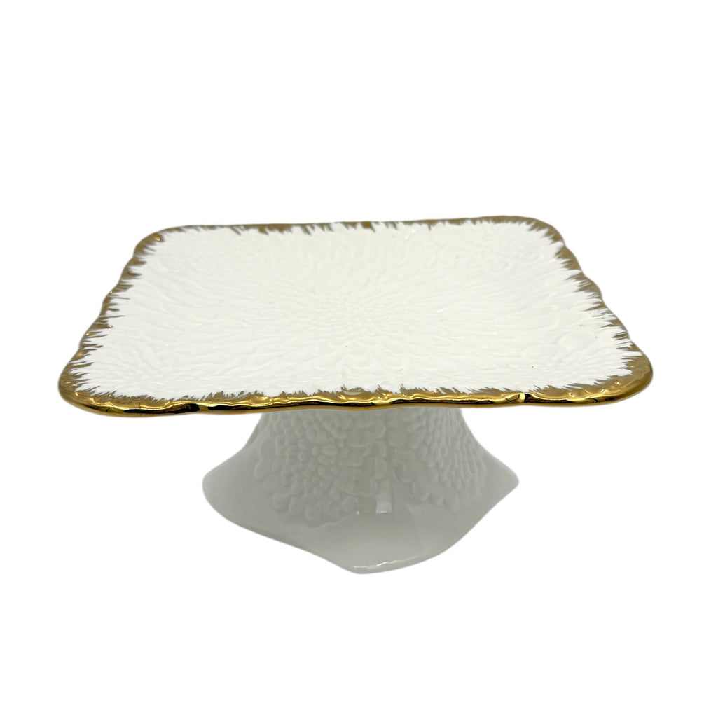 8" FOOTED PLATTER-GOLD RIM-SQUARE