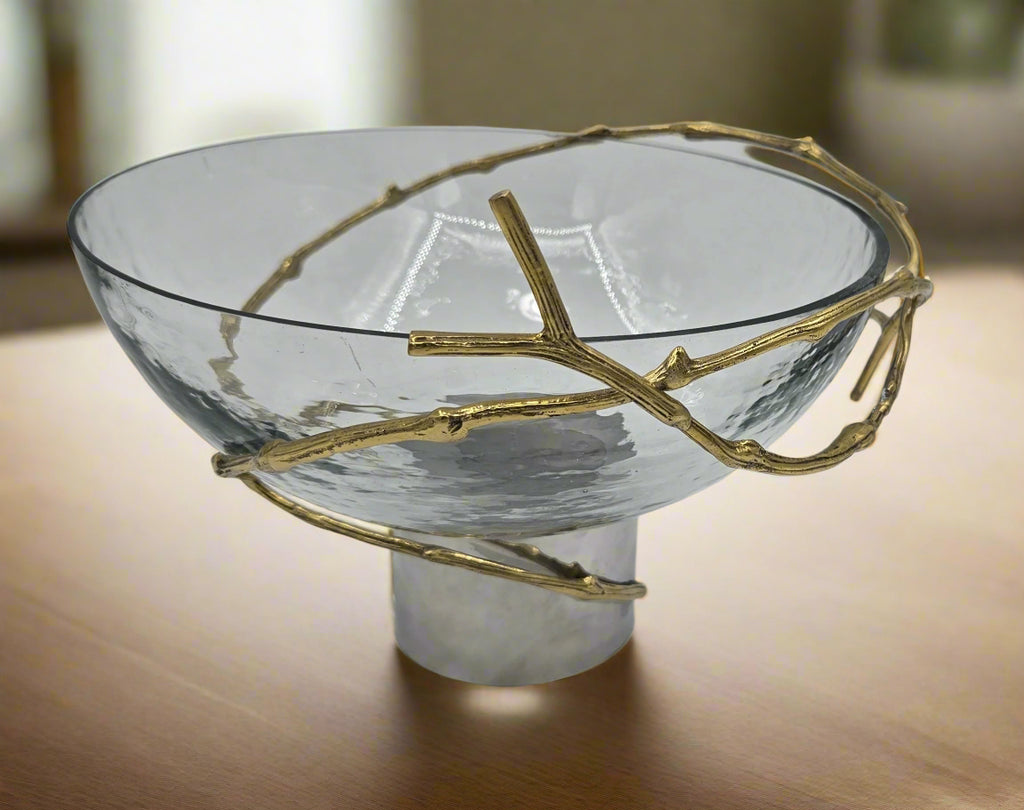 9"x5.5"GLASS BOWL-BRANCH DESIGN